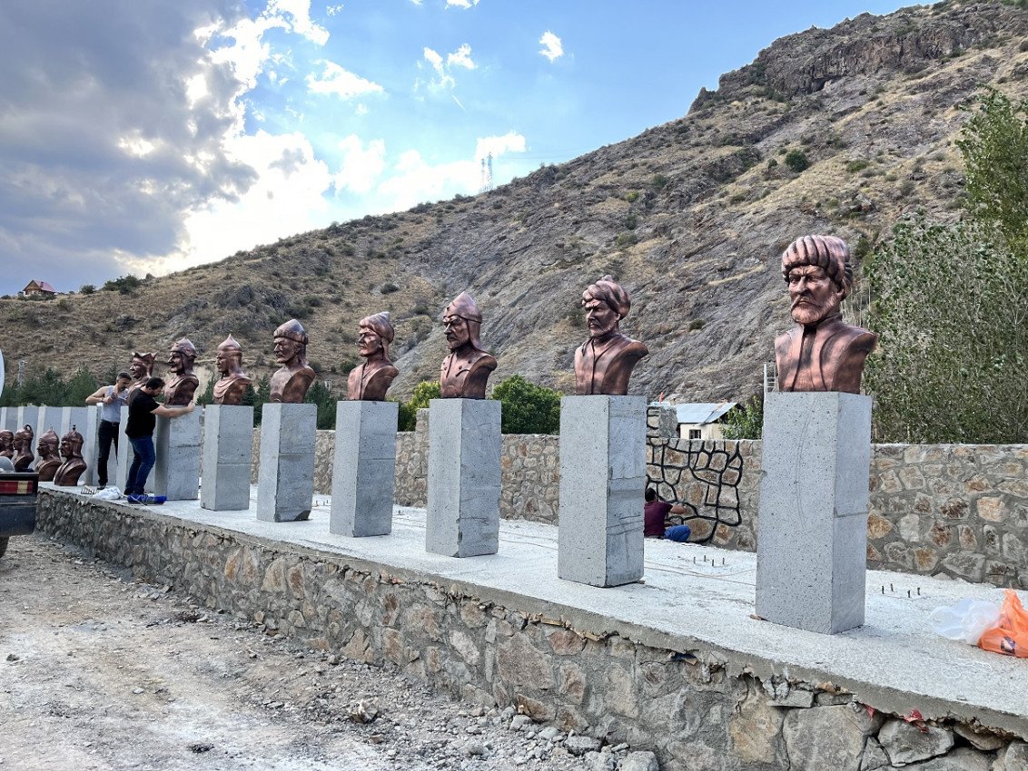 On yedi Türk devletinin kurucularına ait büstler, tarihi liderlerin yüz hatlarını gerçekçi biçimde yansıtır. Tümü dayanıklı fiberglas malzemeden üretilir, atölyemizde usta heykeltıraşlar tarafından özenle boyanıp eskitme dokularla tamamlanır. Her biri gururla sergilenecek sanat eseridir.