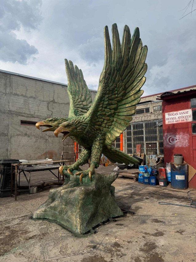 Erzurum`un simgelerinden Çift Başlı Kartal Heykeli en çok tercih edilen çalışmalarımızdandır. Çift başlı kartal heykeli, güç ve egemenliği simgeleyen tarihi bir figürdür. Genellikle Selçuklu sanatında karşımıza çıkar ve doğu ile batıyı aynı anda gözetmeyi temsil eder.