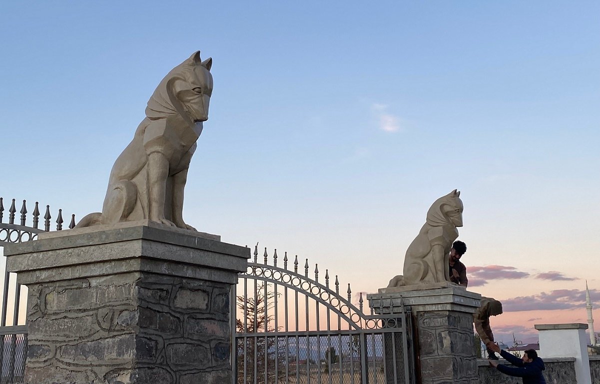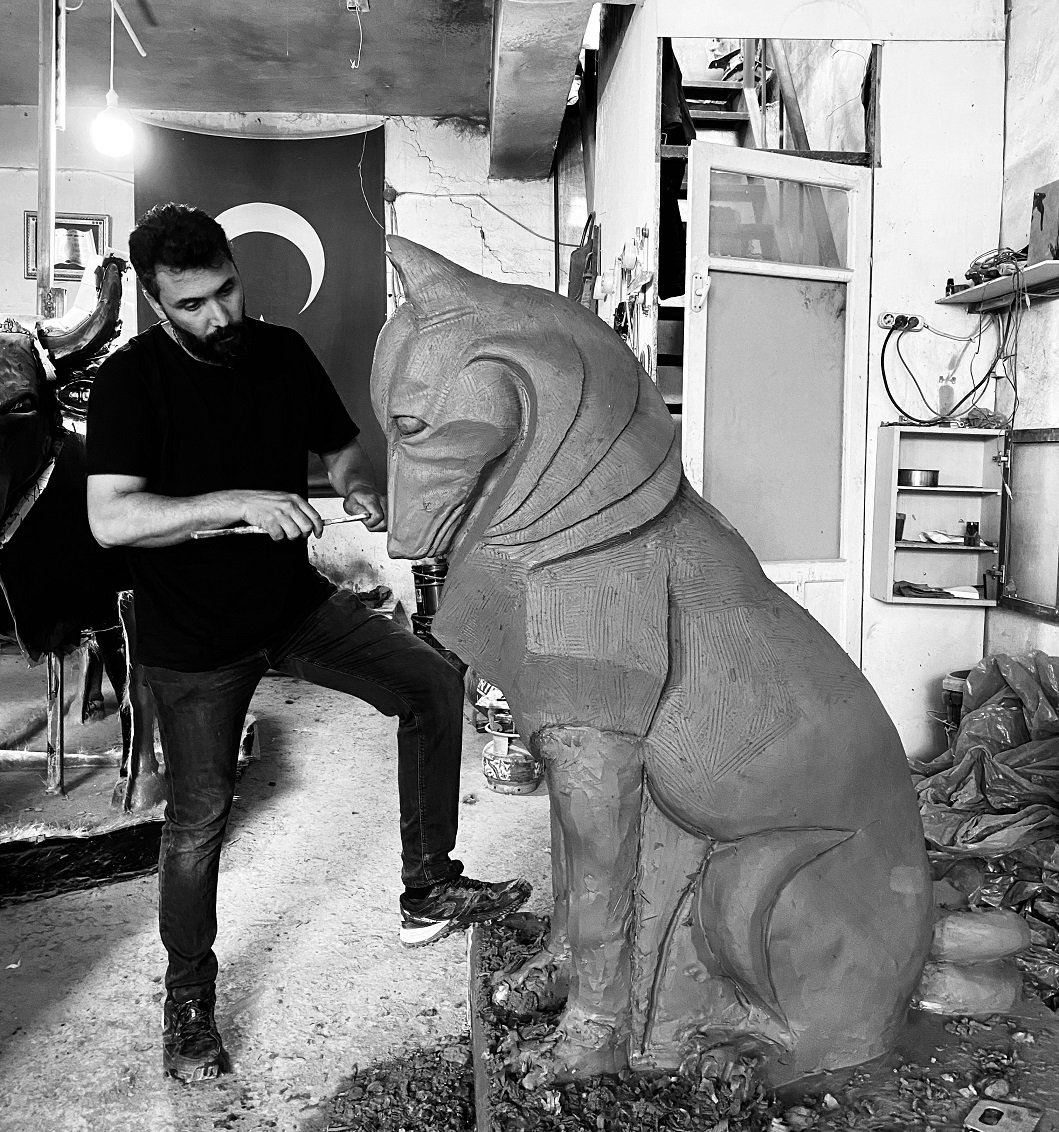 Oturan kurt figürü ile hazırlanan bu kurt heykeli Erzurum ilimizde sergilenmektedir.